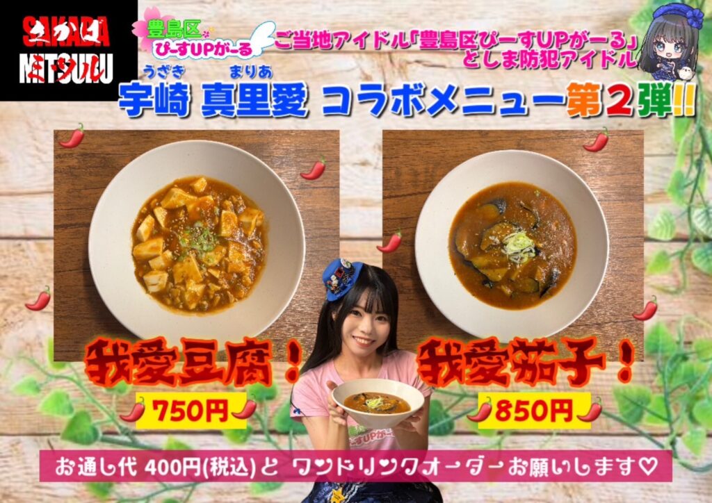 宇崎真里愛様が考案!「我愛豆腐!」「我愛茄子!」販売を開始いたします♪豊島区ぴーすUPがーる 宇崎真里愛様が考案されました! 「我愛豆腐!」「我愛茄子!」販売を開始いたします♪ 我愛豆腐! 750円 我愛茄子! 850円 ピリ辛がクセになる! ご注文どうぞよろしくお願いいたします♪